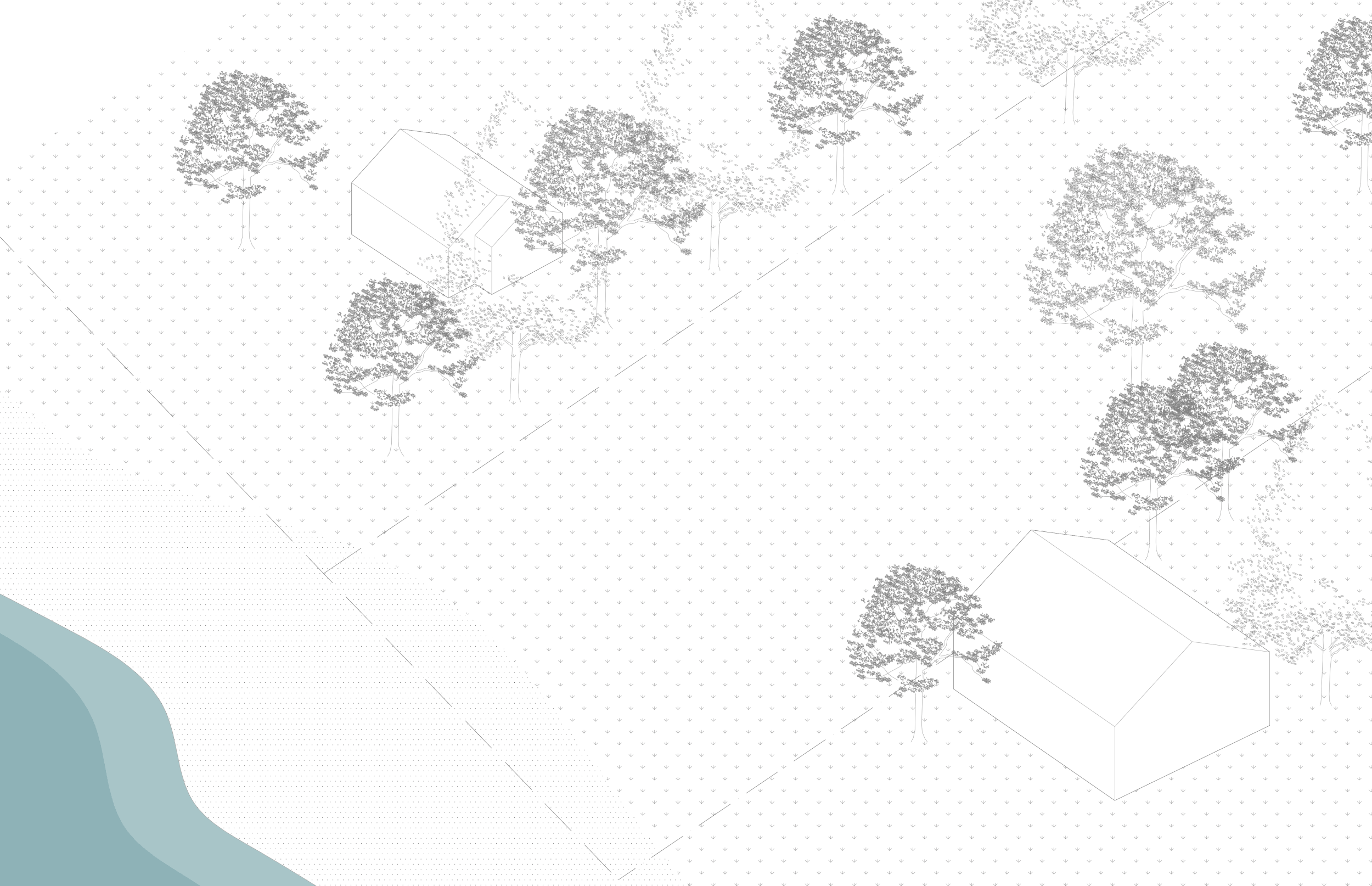 Située au bord du fleuve Saint-Laurent à Sorel-Tracy, l’implantation de la résidence tire profit de la topographie naturelle du site. Depuis la route, le terrain long et étroit est relativement plat sur la majorité de sa superficie, sauf en fond de lot où un dénivelé important permet de rejoindre le fleuve. Cette caractéristique a déterminé l’emplacement de la résidence; une opportunité pour avoir un rez-de-jardin totalement ouvert sur le fleuve.