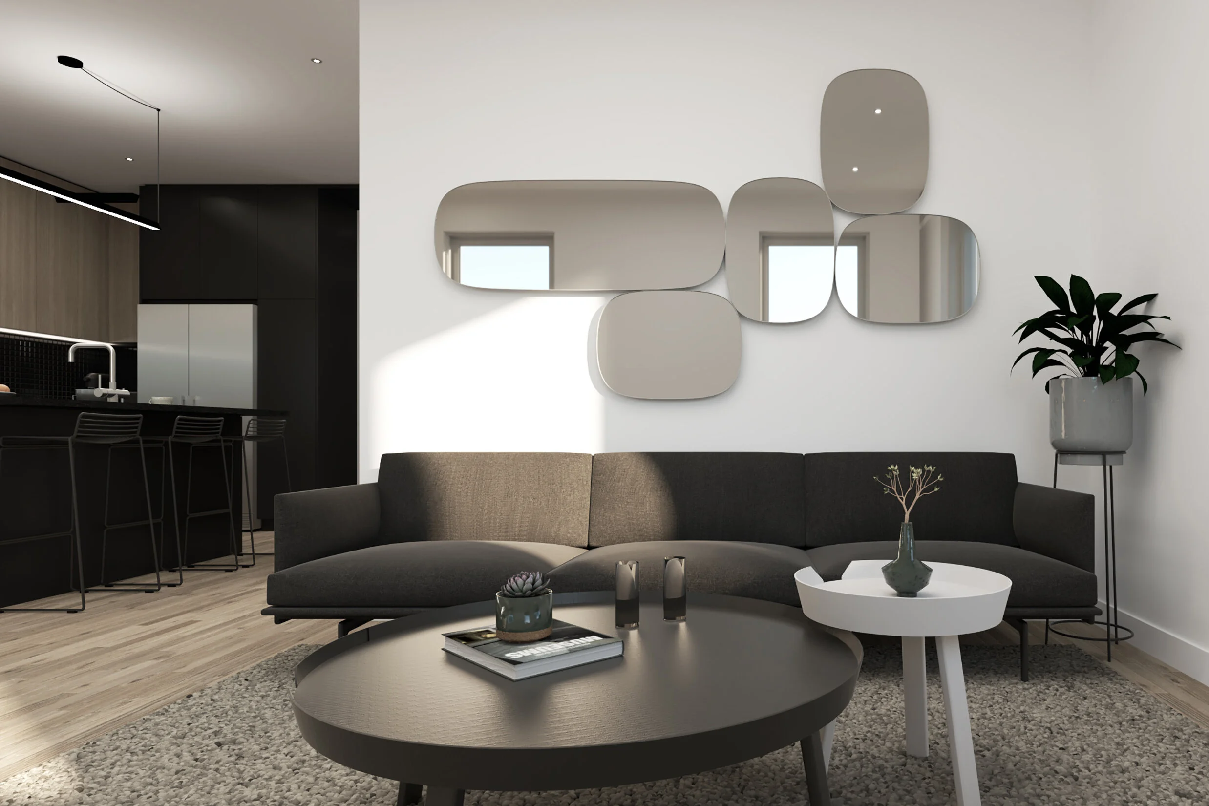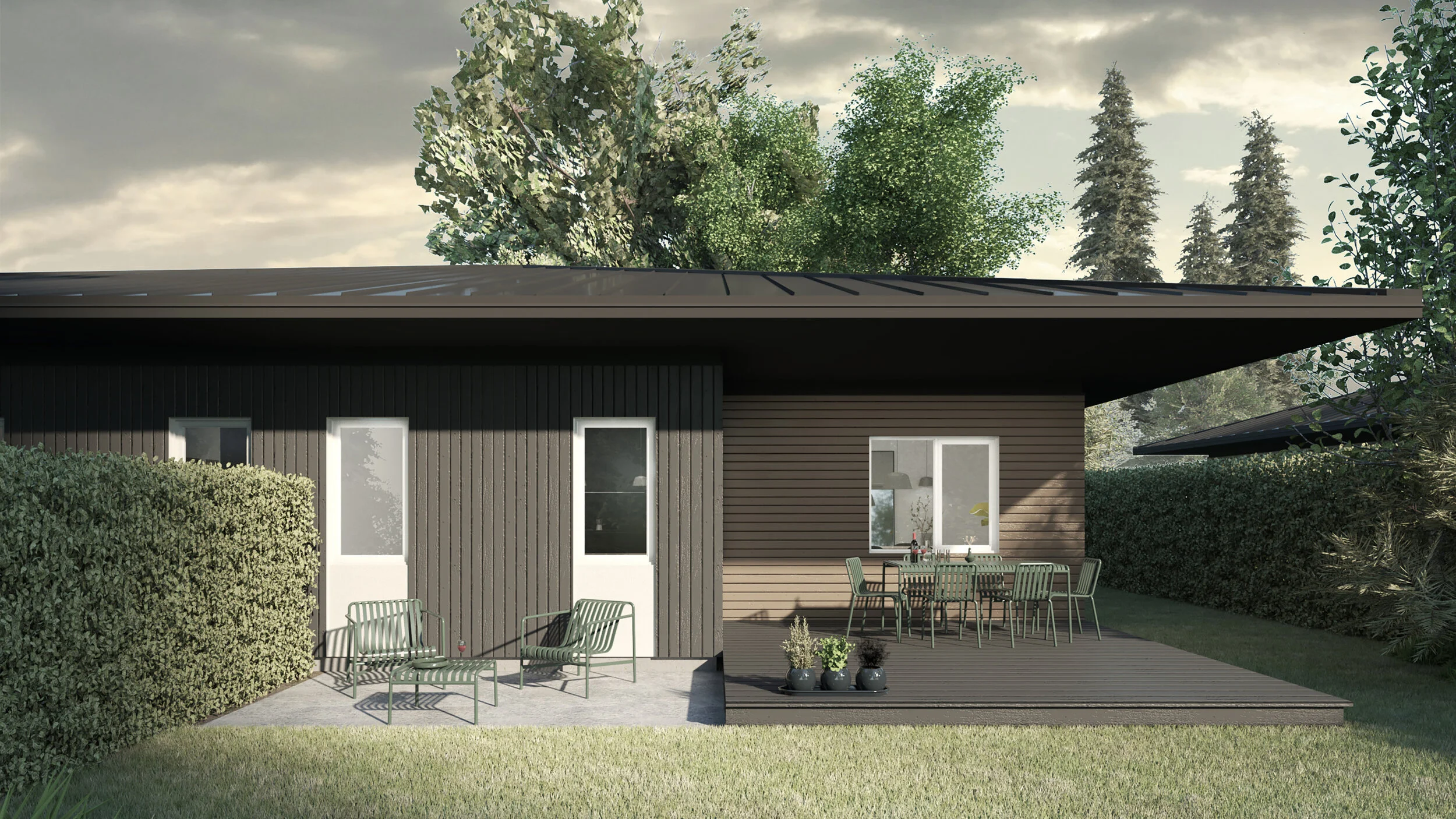 Chaque type d’habitation devait se décliner en deux variantes architecturales; deux options d’un même concept qui permettent de rejoindre des clientèles différentes tout en appartenant à une même famille esthétique et typologique.