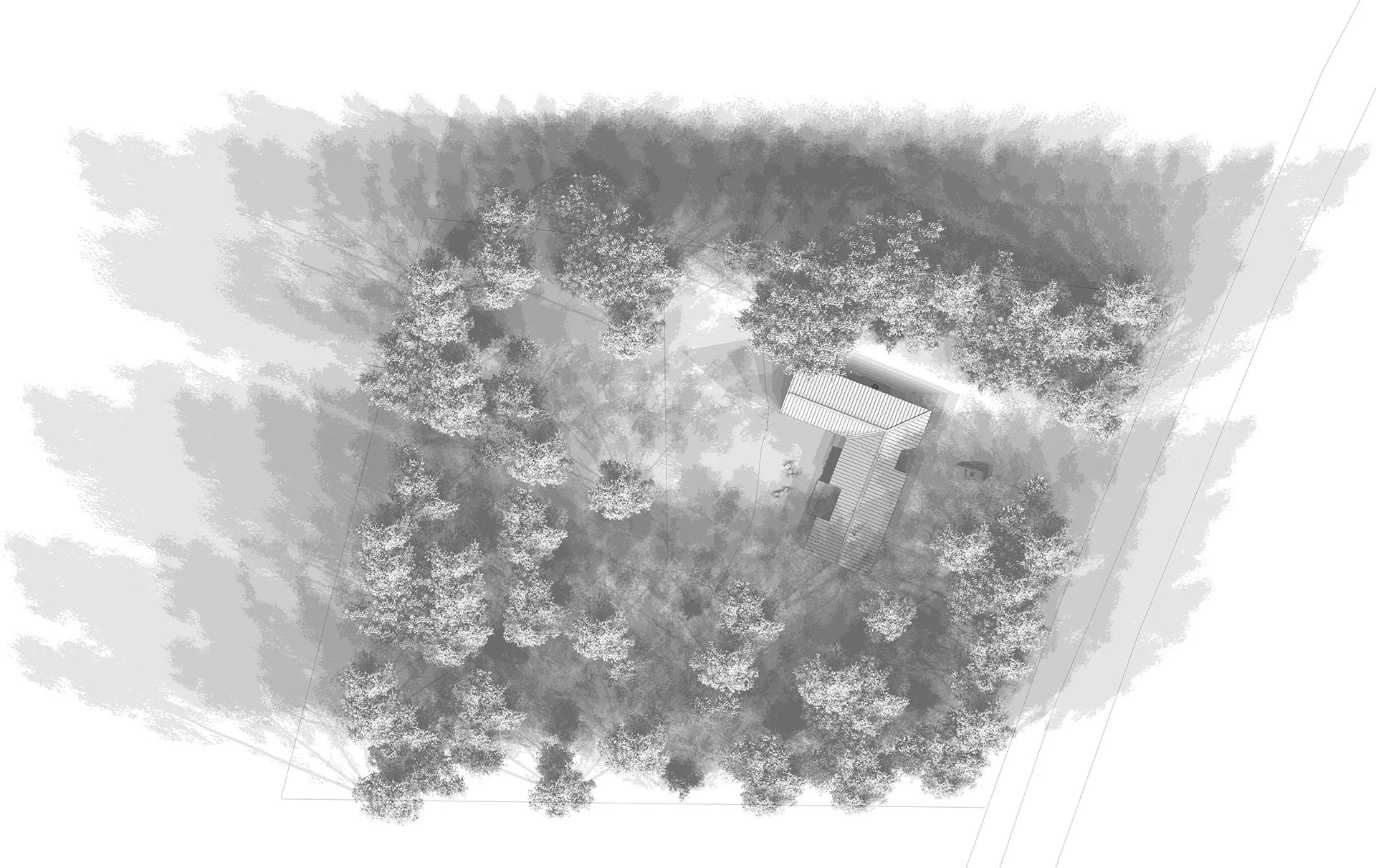 Le bâtiment devait favoriser l’apport de lumière naturelle, offrir des vues sur les attributs d’un site boisé et préserver l’intimité des occupants.